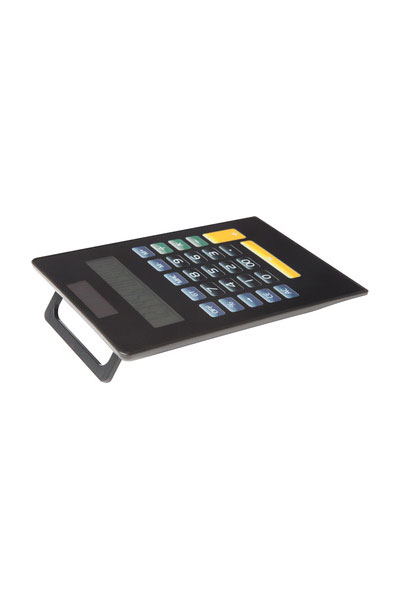 15,8 x 10,5 x 0,8 cm. Plástico. Calculadora con doble fuente de energía. Teclado Virtual. Práctico pie elevador en la parte posterior, 12 dígitos
