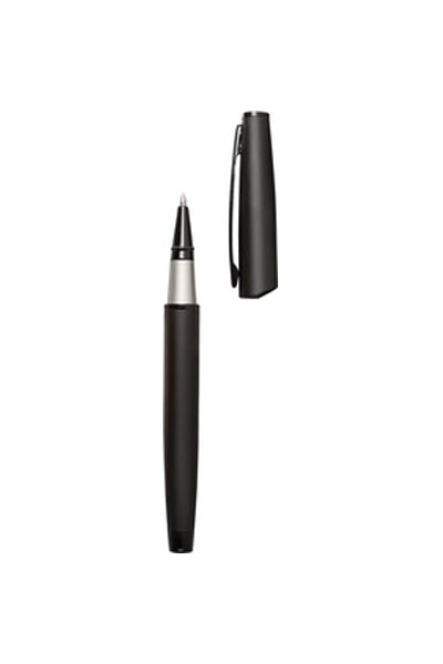Metal. Lápiz roller. Cuerpo de color negro mate, clip con detalles en color negro brillante. Tinta negra. Con estuche de cierre imantado.
