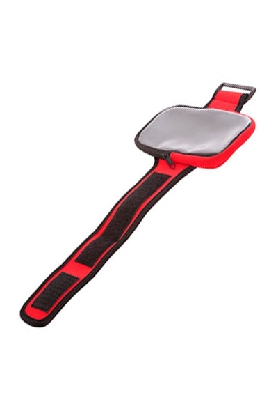 42,5 x 16,1 cm. Neoprene. Brazalete para celulares, malla ajustable con cierre de velcro Posee una ventana transparente de PVC con cierre.