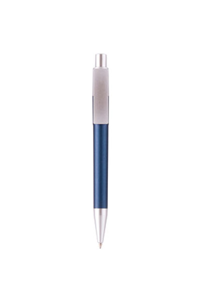Plástico. Cuerpo de color, pulsador, clip y puntera color plata. Tinta negra.