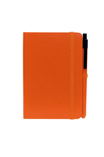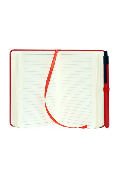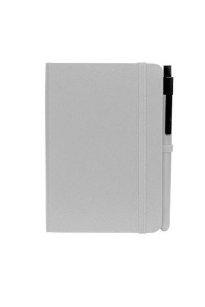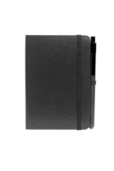 13 X 8 cm. 80 hojas rayadas. Incluye lapíz pasta metálico. Tinta negra.Separador de hojas en tela. Cierre con banda elastica.