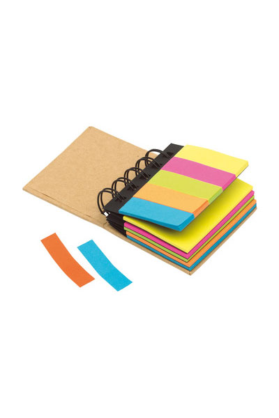 7 x 7,5 x 2 cm Cartón. Material reciclable. 5 blocks autoadhesivosrectangulares grandes. 5 blocks autoadheivos rectangulares chicos. Anillado.