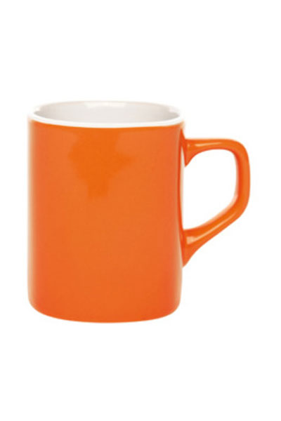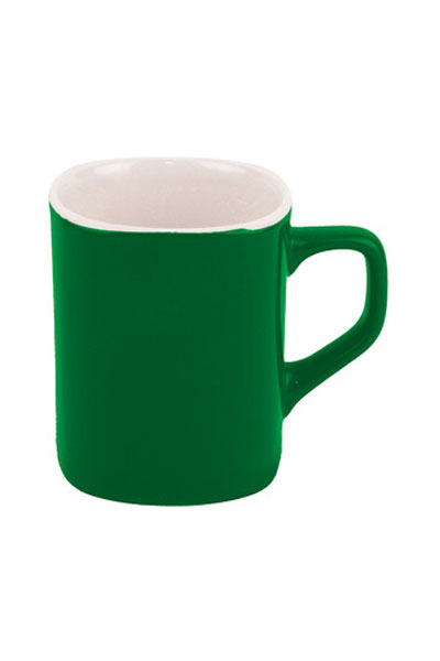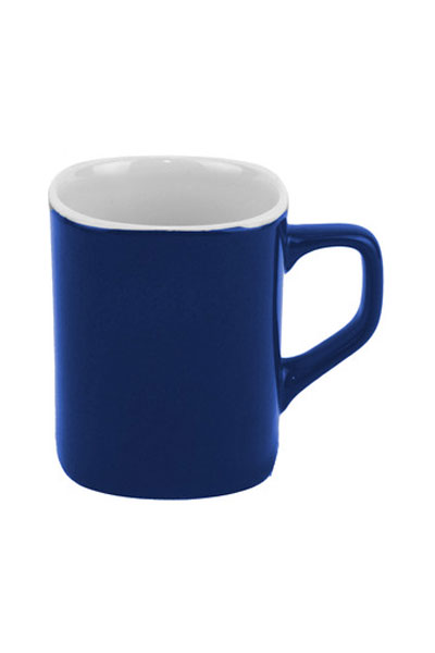 Ø 7,3 x 8,9 cm. Capacidad: 230 ml aprox. Cerámica. Taza cuadrada. Interior blanco y exterior de color. Con asa.