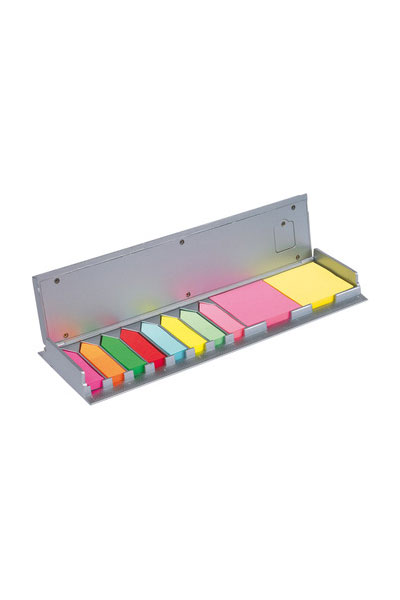 20,8 x 6,5 x 1,7 cm Plástico. Calculadora de 8 dígitos. Regla incorporada de 20 cm. 8 blocks de Flechas autoadhesivas de diferentes colores. 2 blocks autoadhesivos rectangulares. Función dual: solar y 1 pila botón (incluida).