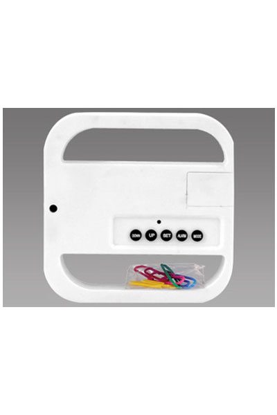 9,4 x 9,4 x 2 cm. Plástico. Reloj, tarjetero y porta clip. Incluye batería Botón.
